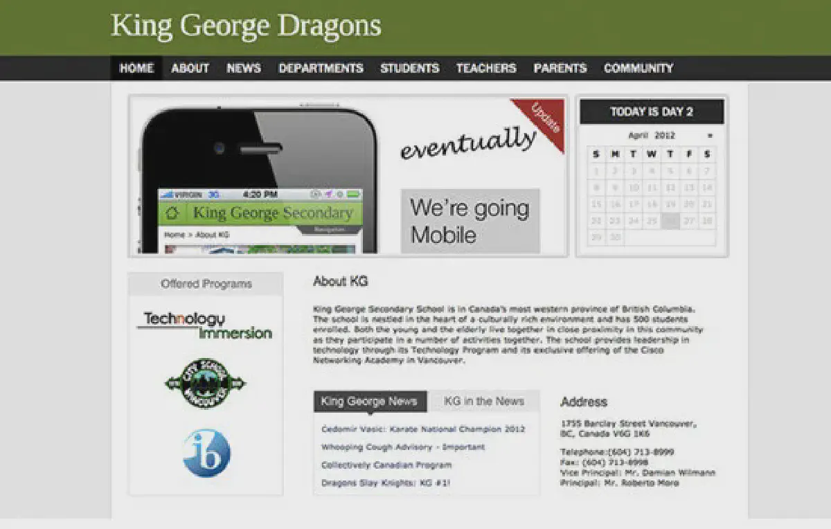 Since then, the VSB has undergone a regime change and the new IT director has centralized all the school websites. Therefore, this website is no longer active.